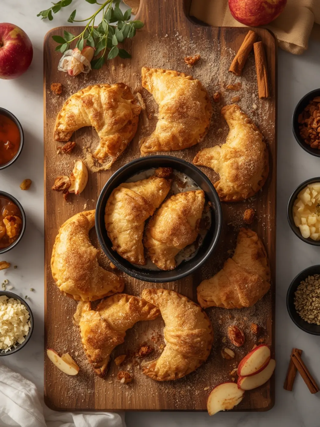 You only need a handful of pantry staples to make these hand pies, which is part of their appeal. For the filling, I prefer tart apples like Granny Smith or Honeycrisp because they hold their shape well and provide a nice contrast to the sweet spices.
