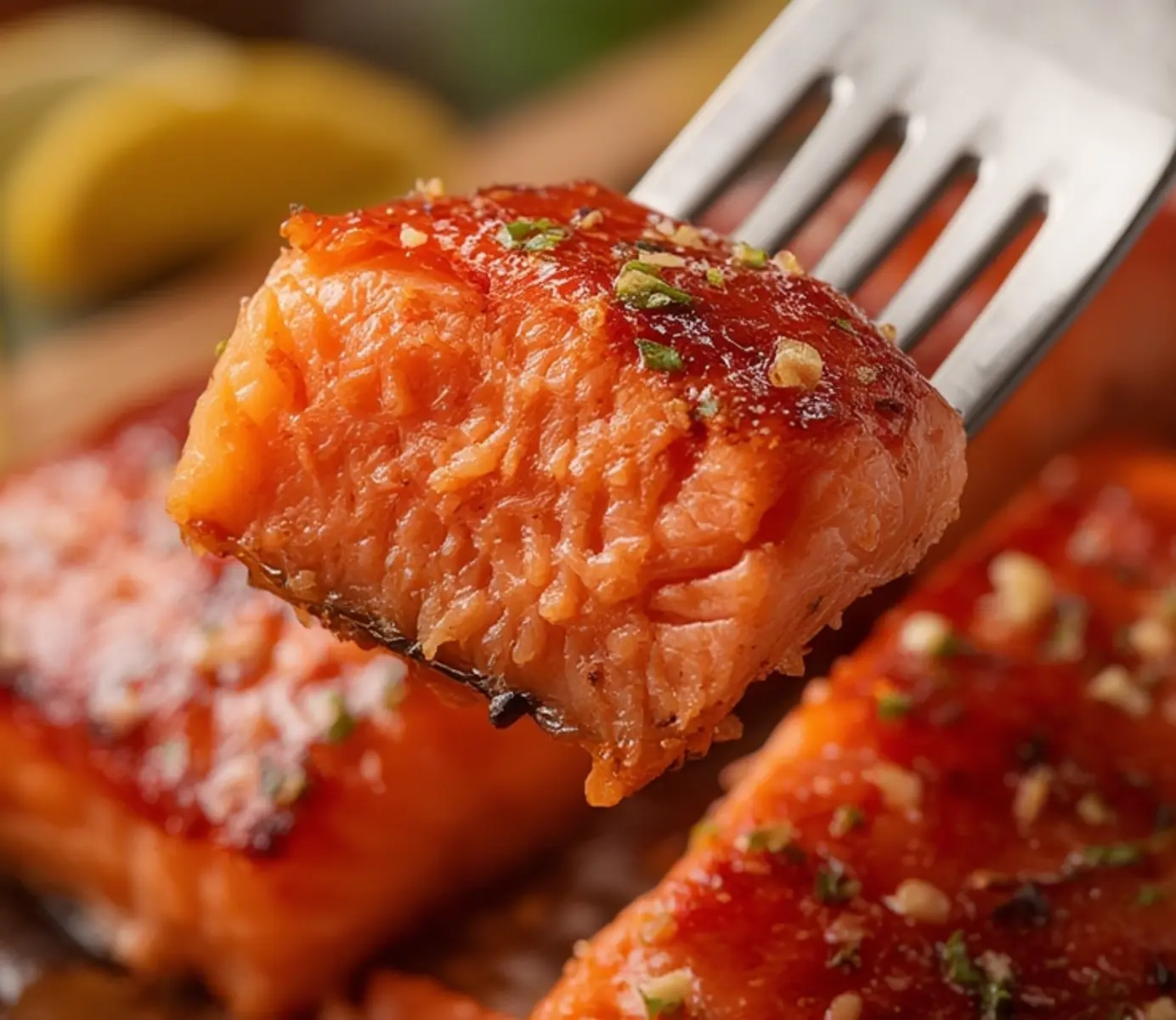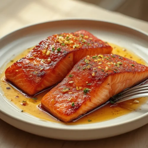 Remove the salmon carefully and brush the remaining glaze over the top immediately. The residual heat will set the sauce into a beautiful, shiny finish.