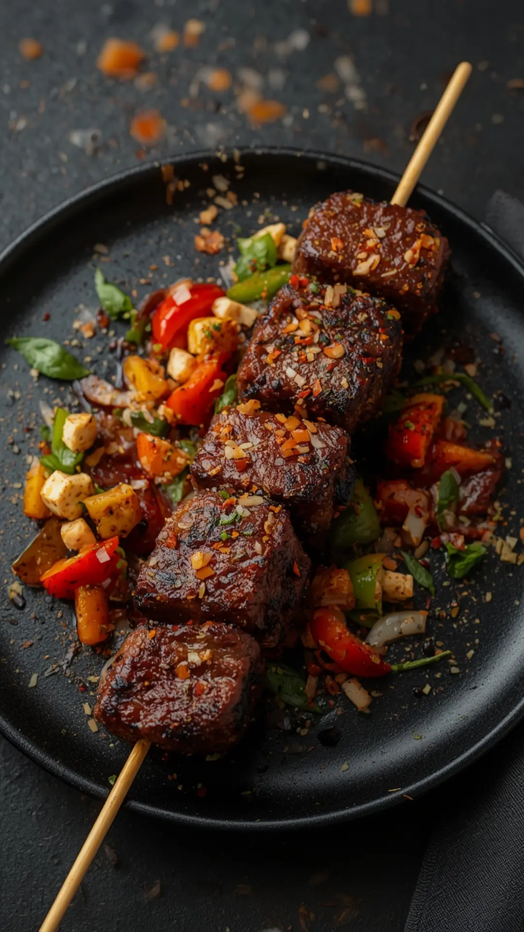 For entertaining, presentation is everything. Serve the skewers fanned out on a large platter over a bed of arugula, which will wilt slightly from the heat. Offer the sauce on the side in a small bowl for dipping. While they are a quick dinner, the skewered format makes them feel special and interactive. Pair this meal with an ice-cold sparkling water with a lemon wedge or a hoppy IPA. The carbonation and bitterness provide a refreshing palate cleanser between bites of the rich beef and vegetables.