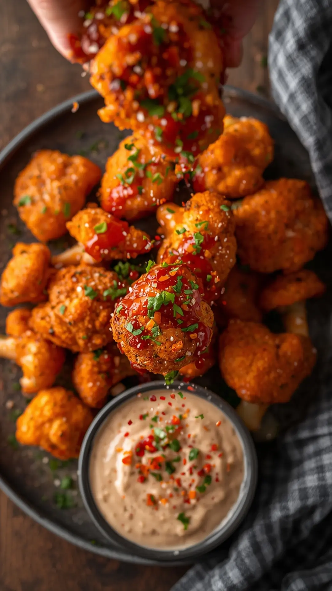 5. Sauce and Glaze: While the cauliflower cooks, warm your buffalo sauce. Toss the hot cauliflower in the sauce immediately after removing it from the air fryer.