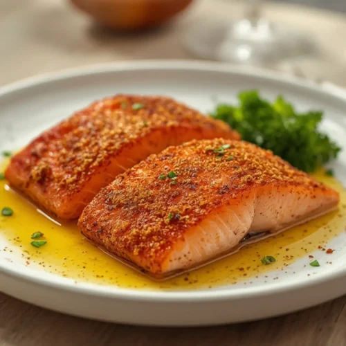For the seasoning, you will need a homemade or store-bought Cajun spice blend featuring paprika, garlic powder, onion powder, cayenne, oregano, and thyme. This combination builds the signature spicy salmon flavor profile. Fresh lemon juice and a touch of honey are crucial for balancing the heat with a bright acidity and subtle sweetness.