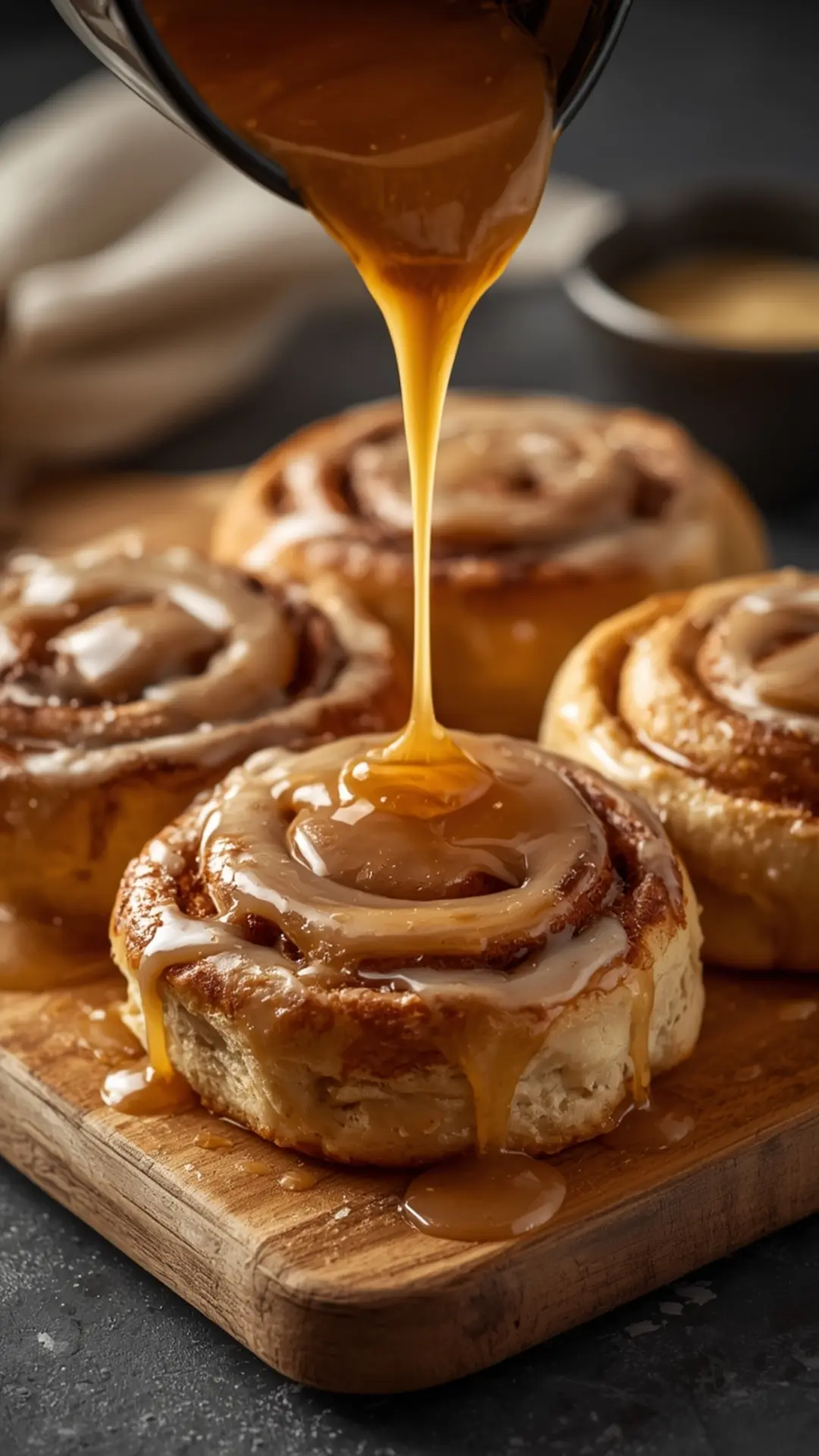 - In a small bowl, whisk together the melted butter, brown sugar, cinnamon, and salt to create a glaze.
