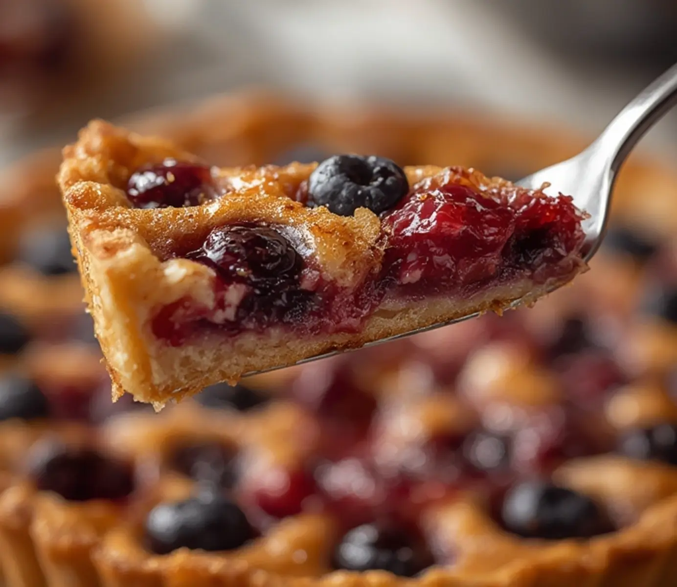 air fryer fruit tart: Golden air fryer fruit tart with juicy berries on a flaky crust, bubbling and glossy.