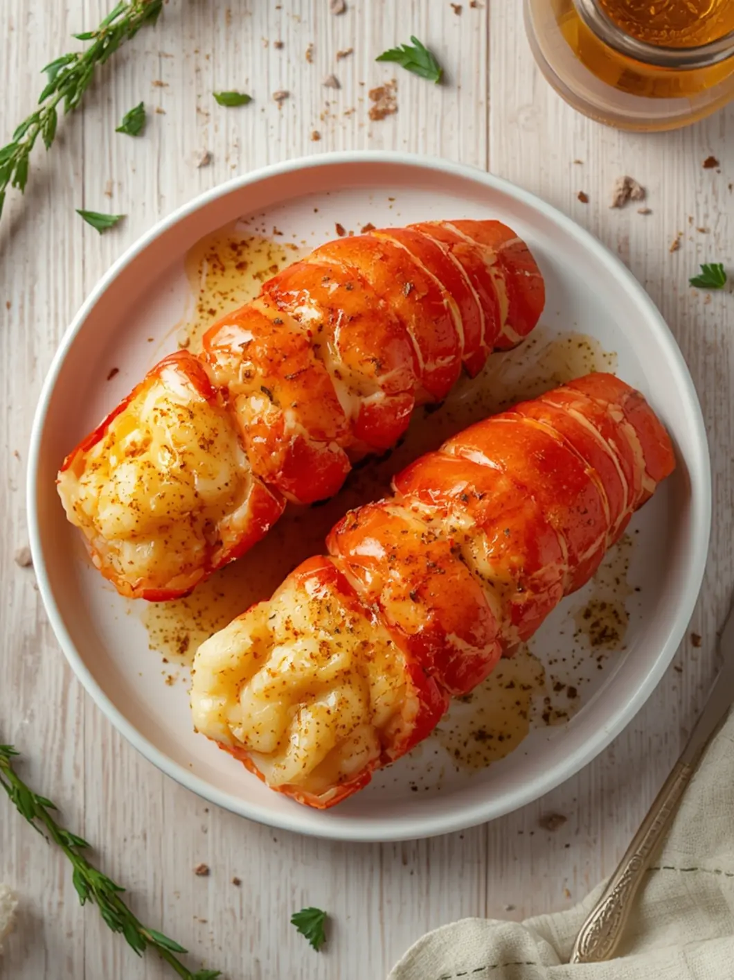 Air Fryer Lobster Tails: Juicy air fryer lobster tails with golden butter glaze and fresh parsley garnish.