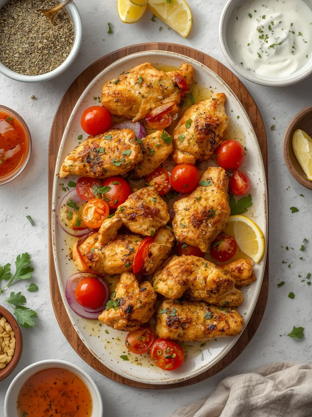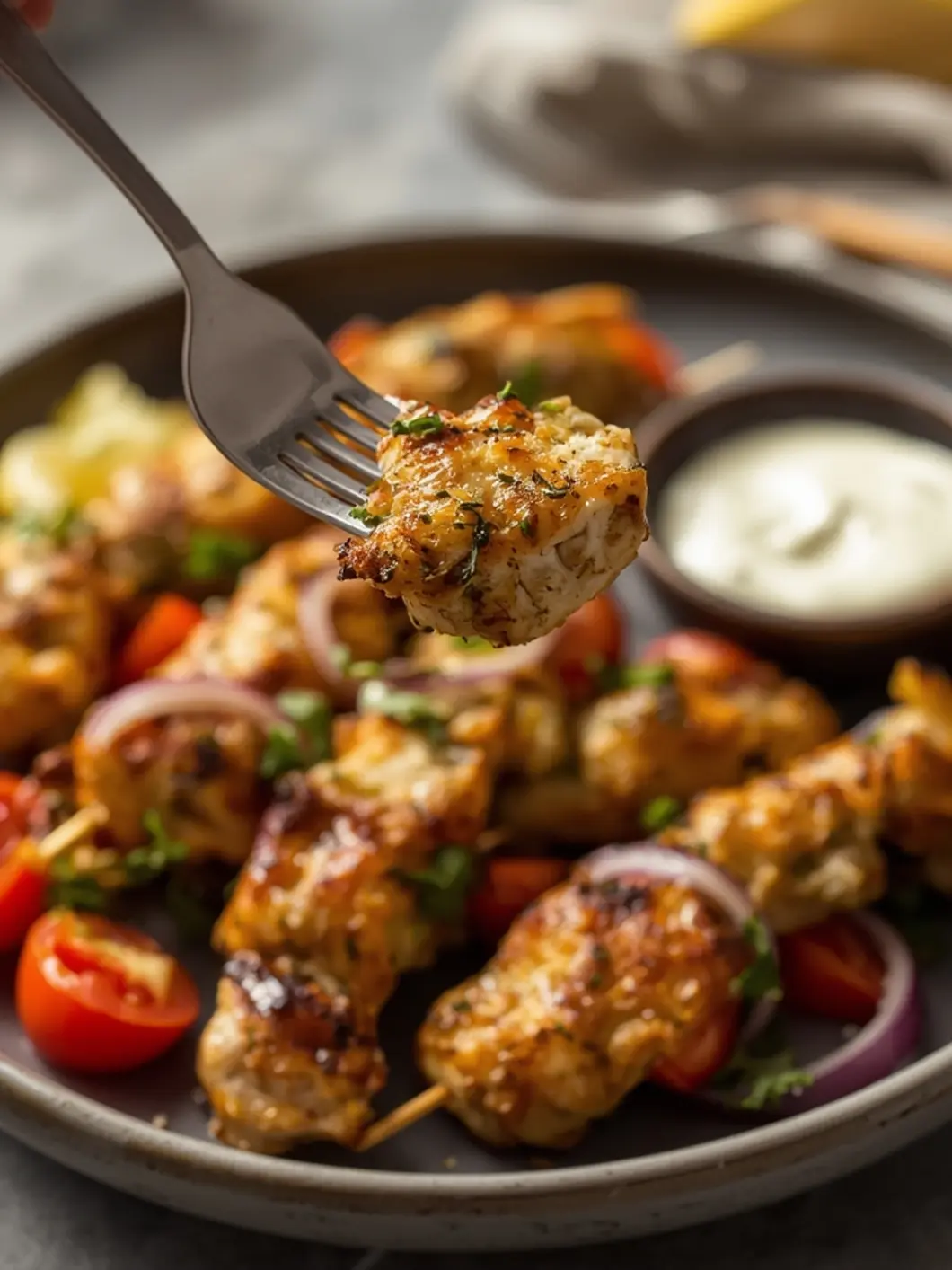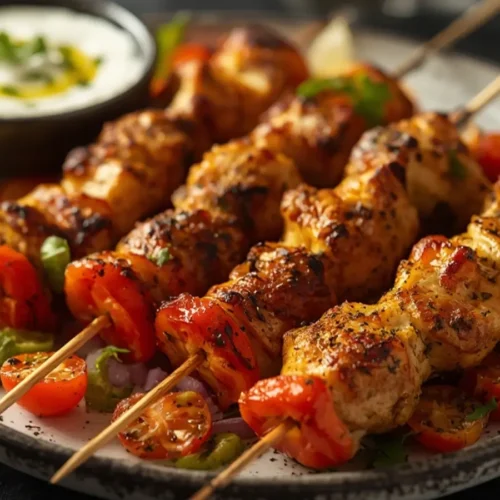 For the marinade, I use extra virgin olive oil, fresh lemon juice, minced garlic, dried oregano, and smoked paprika. These ingredients define the Air Fryer Mediterranean Chicken Skewers flavor profile. Using fresh garlic and high-quality olive oil makes a noticeable difference compared to dried alternatives. A pinch of red pepper flakes adds a subtle heat that wakes up the palate.