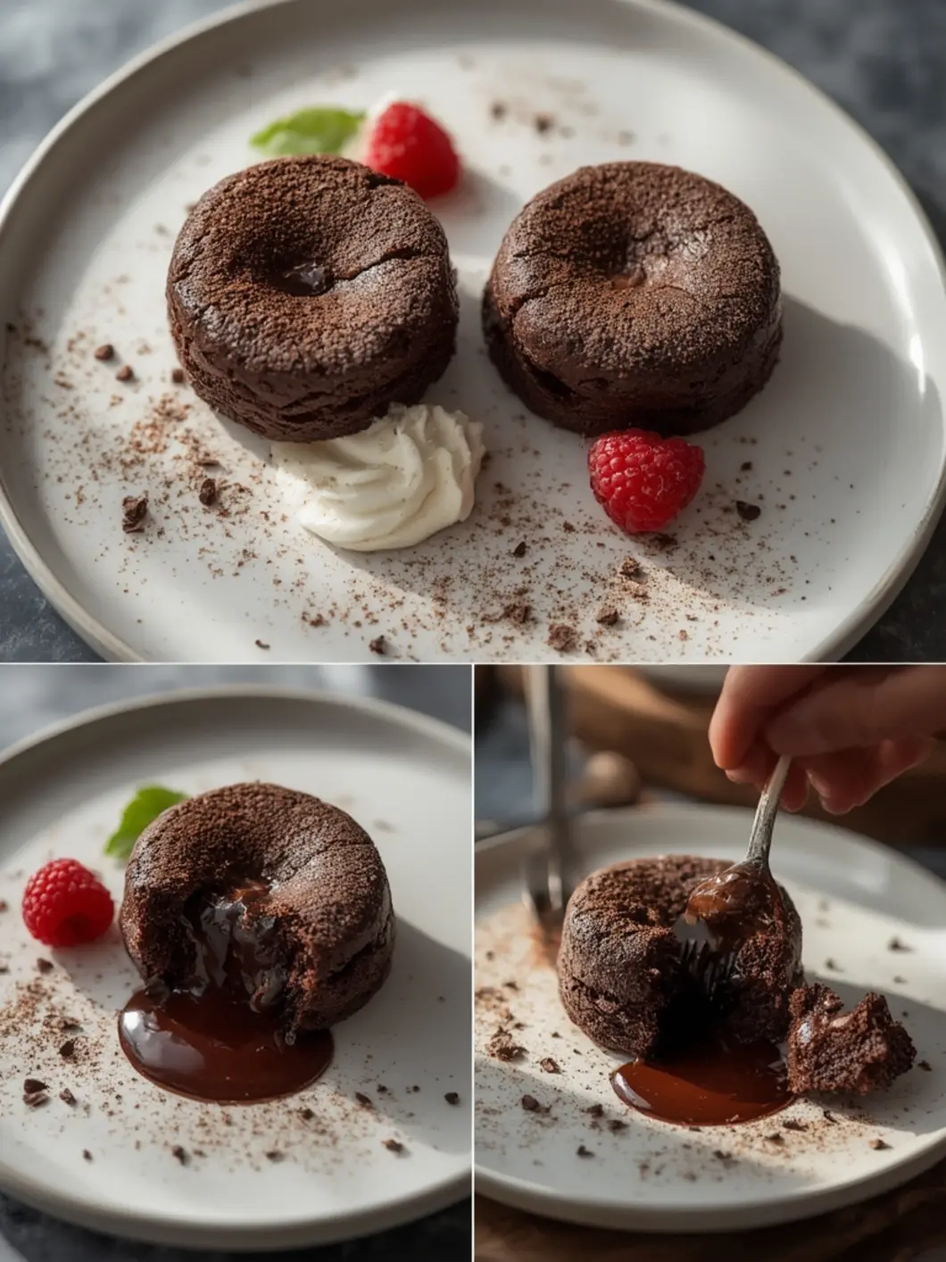 The edges should look set, but the center will still jiggle slightly. This jiggle is the secret to that molten flow. Let them cool for a minute or two before inverting onto a plate. Dust with powdered sugar if you like.