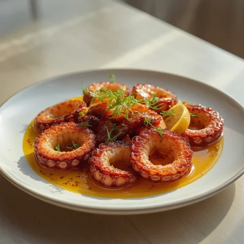 Let the octopus rest for two minutes before serving. This allows the juices to redistribute, ensuring every bite is succulent.