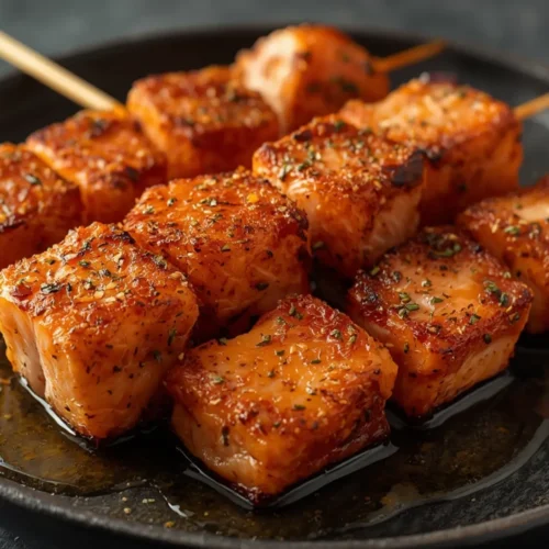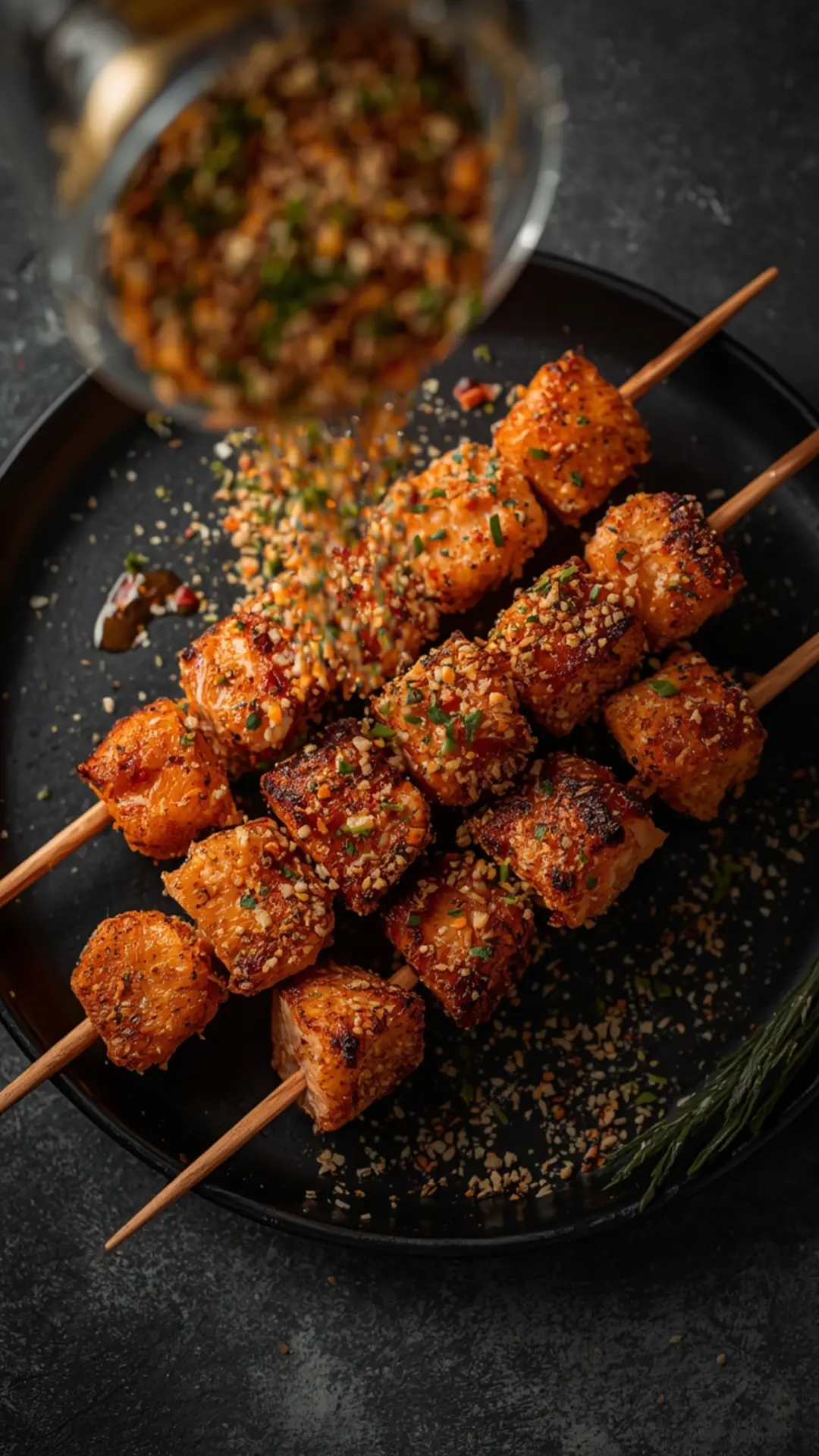For a textural contrast, I recommend a sesame crust. After marinating, roll the salmon cubes in a mixture of toasted sesame seeds and panko breadcrumbs. This creates a “crunchy” kebabs experience that holds up well against the tender fish.