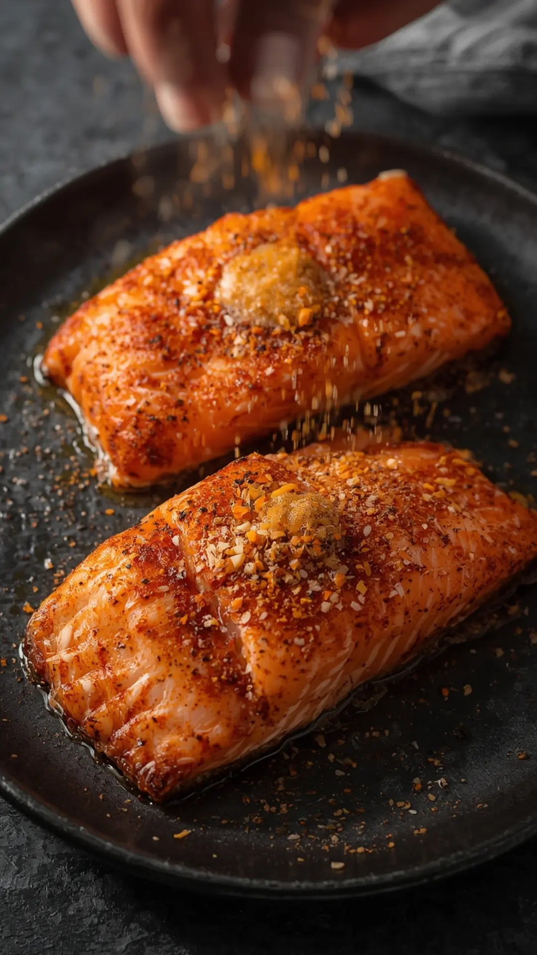 Start by patting the salmon fillets completely dry with paper towels. Moisture is the enemy of crispiness, so removing surface water allows the oil and seasonings to adhere better.