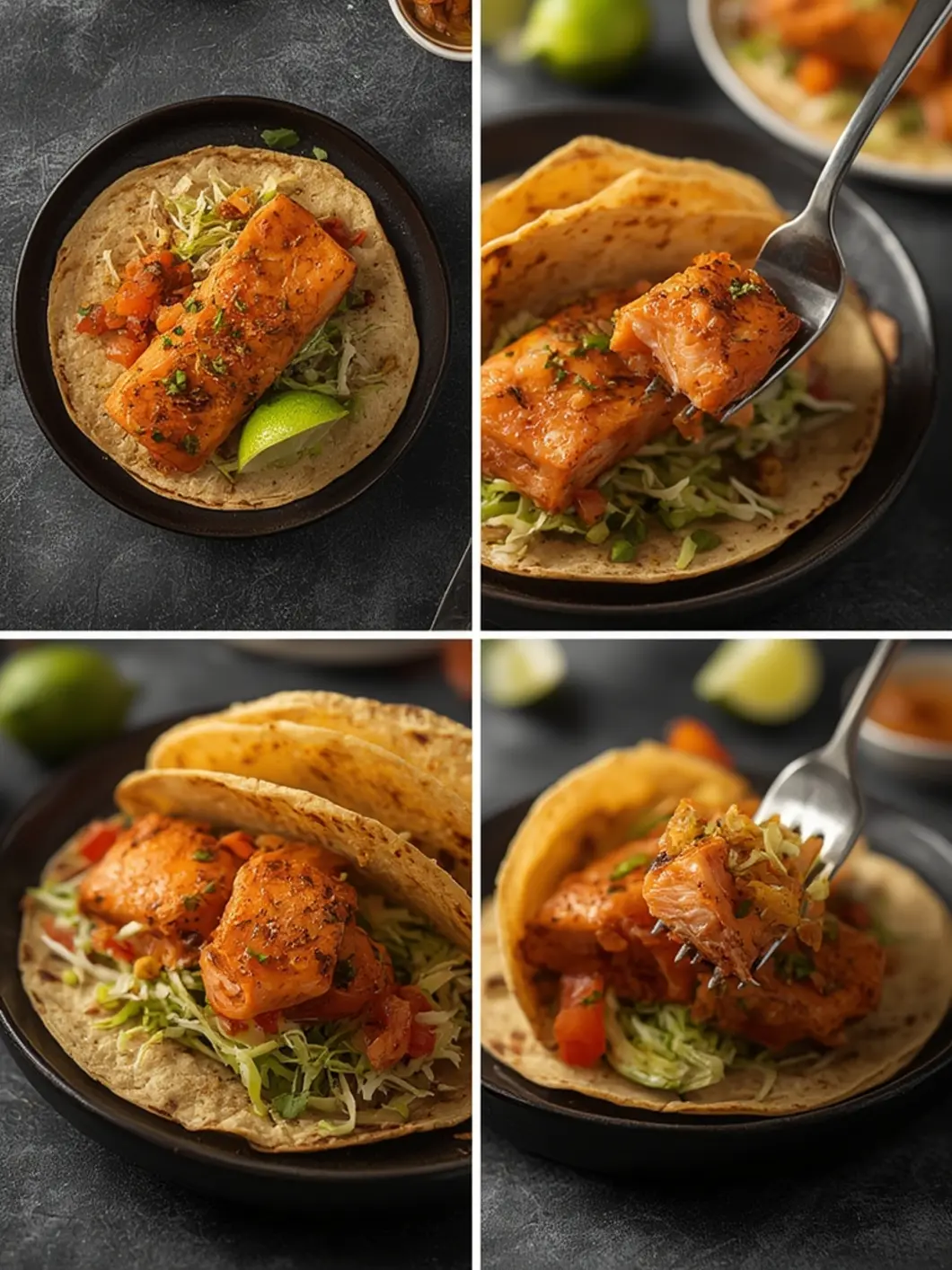 The magic starts with high-quality ingredients. For this recipe, you’ll need about a pound of fresh salmon fillets, skin removed. The spice blend is crucial: a mix of smoked paprika, garlic powder, cumin, chili powder, and a pinch of salt creates a savory crust that mimics the best air fryer salmon dishes. You’ll also need small corn or flour tortillas and your favorite toppings like slaw, avocado, and lime wedges.