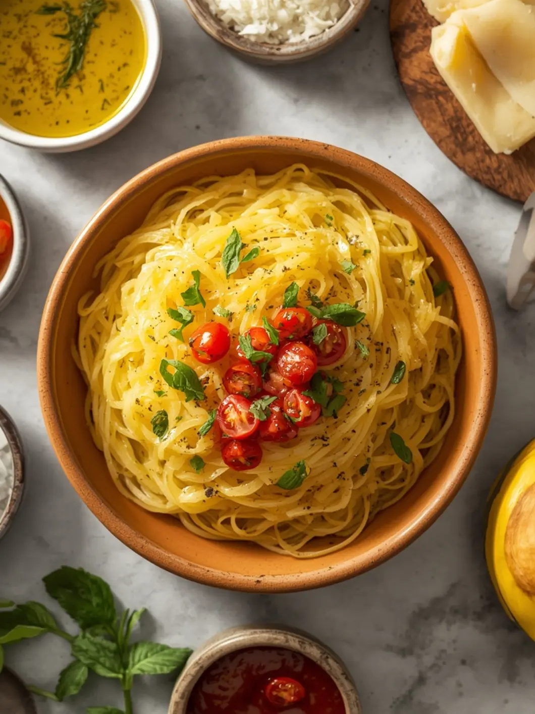 To execute this lean recipe, you need a medium-sized spaghetti squash, typically weighing around two pounds. Look for one that feels heavy for its size with a creamy, consistent pale yellow color.