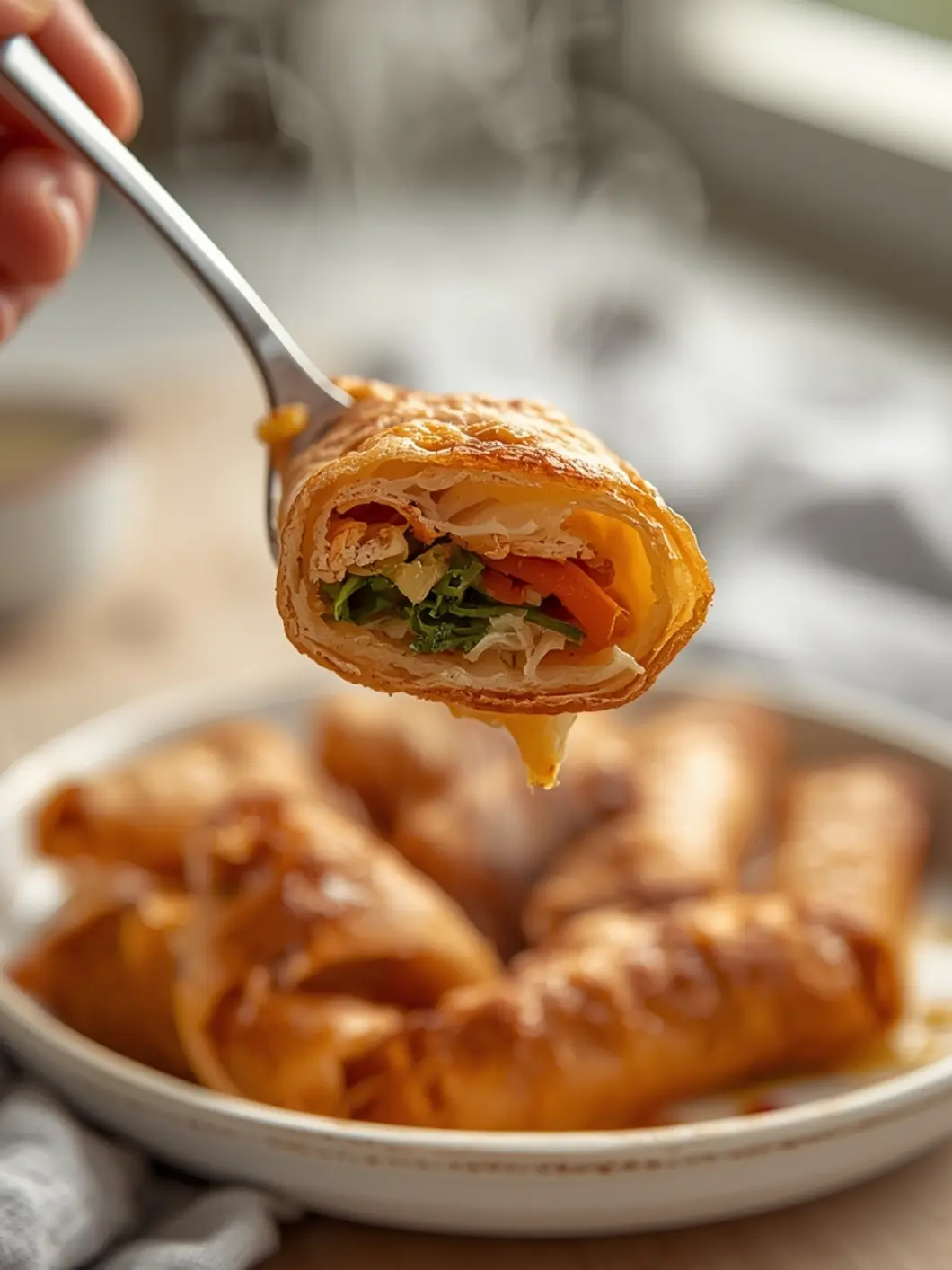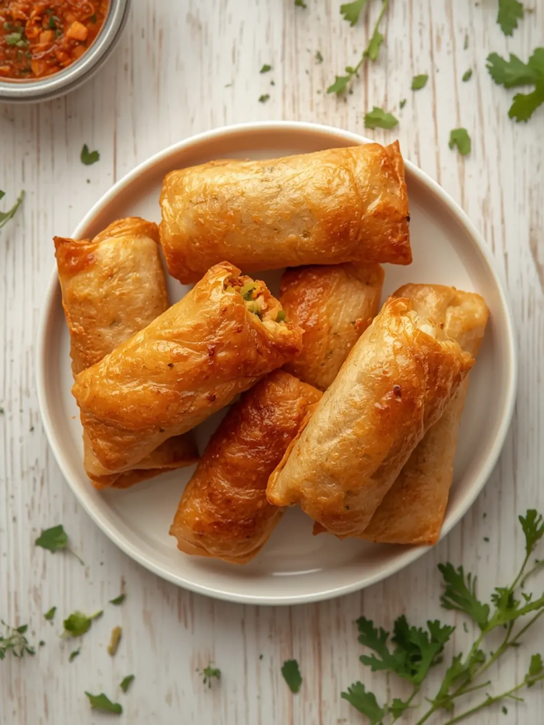 Let them rest 2-3 minutes after frying to finish crisping. Slice diagonally to show the filling and serve with a trio of dipping sauces like sweet chili, peanut sauce, and soy-vinegar. Pair with a crisp cucumber salad or a light Asian slaw, and keep a warm oven or air fryer handy to maintain crunch during the meal.