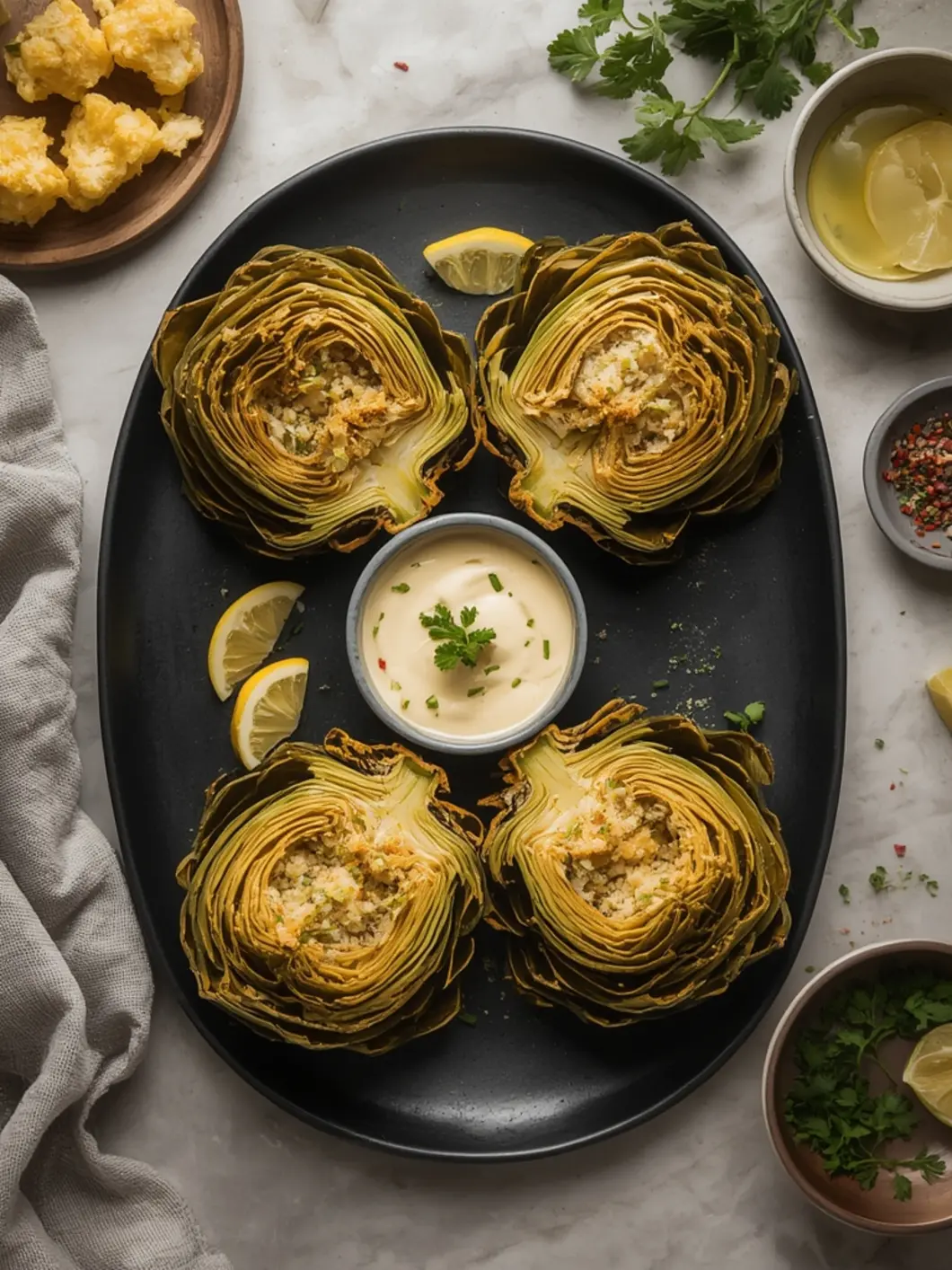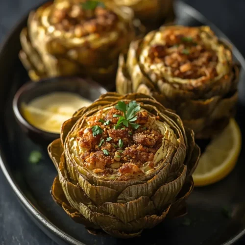 These stuffed artichokes are packed with fiber and antioxidants, making them a nutritious choice. The air fryer uses significantly less oil than traditional frying, aligning with a healthier lifestyle.