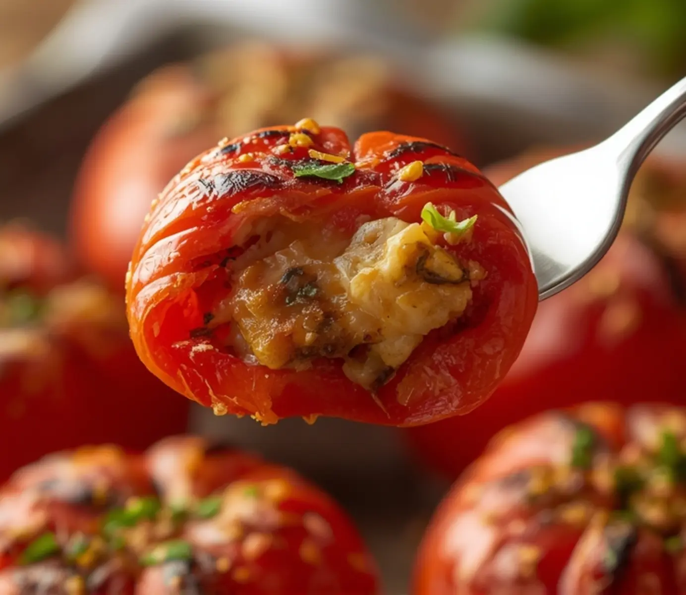 For the filling, I use a mix of herbed breadcrumbs, grated Parmesan, and fresh garlic. This combination creates a crunchy texture that contrasts beautifully with the soft tomato flesh.