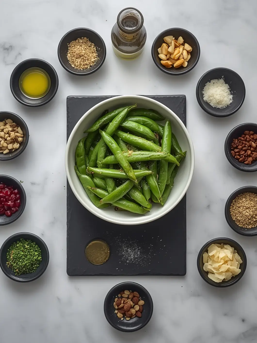 For this recipe, you’ll need fresh sugar snap peas. Look for bright green pods that feel firm and snap easily when bent. Avoid any that look wilted or have yellowed edges.