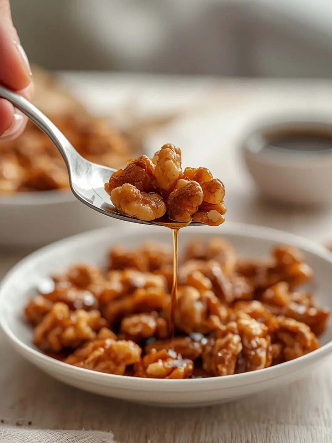 • In a mixing bowl, toss the raw walnuts with maple syrup and sea salt until evenly coated.